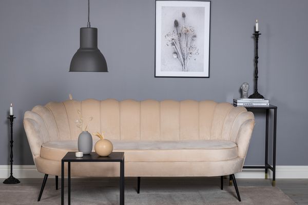 Vi erbjuder soffor i sammet, polyester, bouclé, linne och läder. Varje produktsida visar exakt materialsammansättning.