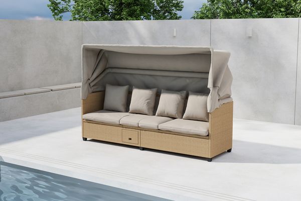 Rengör med mild tvållösning och vatten. Undvik högtryckstvätt. Teakmöbler kan behandlas med teakolja årligen. Förvara dynor torrt under vintersäsongen.