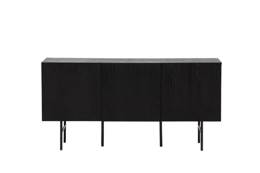 Avlastningsskåpet i Skandinavisk design som klättrar på trendlistorna med sin stilsäkra utformning! Skåpet tillhör serien Björkön och kommer i olika kulörer och storlekar. Det här avlastninsgskåpet har tre luckor i ribbad design med två hyllplan som möjliggör dold förvaring. Skåpet är tillverkat i svarta faner och lyfts upp av smal ben i svart stål. Använd som sidobord med vackra dekorationer och ljusstakar på eller som tv-bänk i vardagsrummet. Här får du en möbel som är lika snygg som smart!