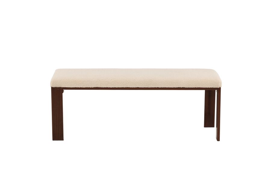 En bänk designad helt i linje med trenderna! Den här bänken från serien Chester har en rektangulär sits i mjukt fleecetyg i vit kulör och fyra ben i brunt valnötsfärgat trä. Den perfekta inredningsdetaljen till hallen eller vardagsrummet, som solitär stilikon eller för att skapa fler sittplatser i hemmet. Bara fantasin sätter gränser men en sak är säkert; den här bänken skapar snabbt ett modemedvetet blickfång!