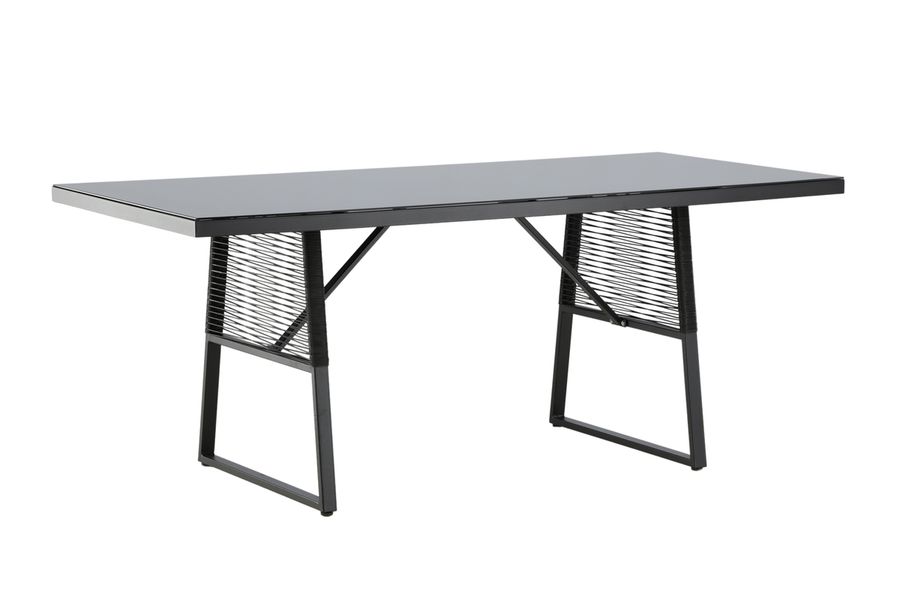 Dallas är ett rektangulärt matbord tillverkat i svart aluminium. Bordsskivan är i mörkt glas, bordsstommen har schyssta repdetaljer som ger bordet ett kaxigt och smakfullt uttryck. Matcha med stolar i samma serie för en komplett matgrupp. Gör dig redo för härliga sommarstunder tillsammans med familj och vänner! Skötselråd: Utemöbler i aluminium och rostfritt stål bör rengöras regelbundet med vatten och mild tvål. Skölj alltid noggrant med rikligt med vatten, något som blir extra viktigt om möblerna är placerade på ett havsnära avstånd där salt kan transporteras via luften.
