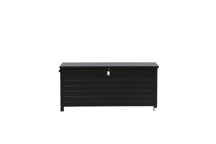 Elsa - vår praktiska svarta dynbox, den perfekta förvaringslösningen för dina dynor. Ta hand om dina dynor på rätt sätt, det kan förlänga livslängden! Vi tipsar! Utemöbler i aluminium och rostfritt stål bör rengöras regelbundet med vatten och mild tvål. Skölj alltid noggrant med rikligt med vatten, något som blir extra viktigt om möblerna är placerade på ett havsnära avstånd där salt kan transporteras via luften. Saltet kan leda till korrosion som kan orsaka flagning eller bubblor i lacken. Tvätta inte dynboxen med högtryckstvätt, ytan kan skadas av det höga trycket.