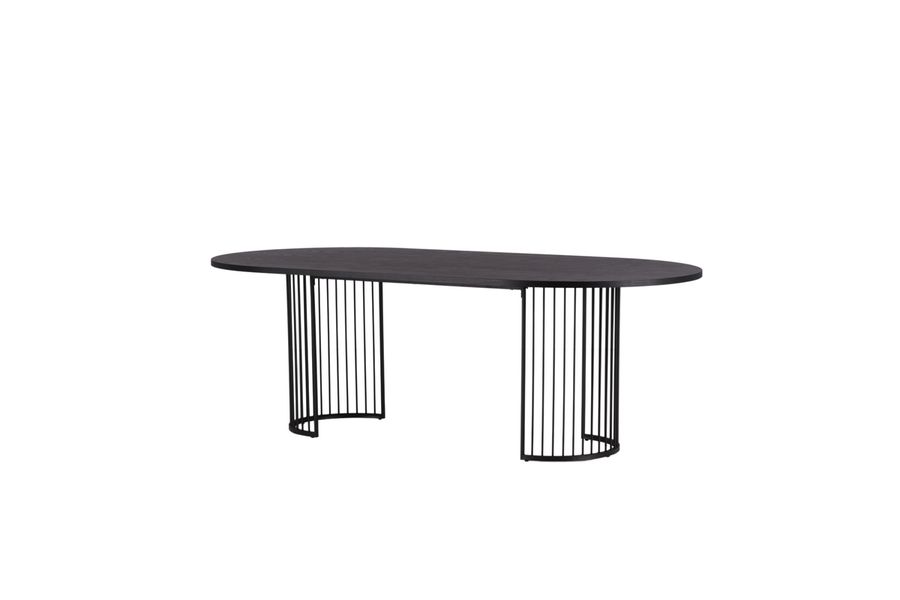 Hamneskär, ett modernt matbord som drar blickarna till sig! Den ovala bordsskivan är i MDF och det dekorativa underredet i svart metall är format likt en halvmåne i ribbad design. Bordet är genomgående i elegant svart kulör vilket ger rummet ett pampigt och kaxigt uttryck men också enkelt att matcha med övrig inredning. Sätt din personliga prägel på inredningen, matcha med ett par bekväma matstolar och skapa ett imponerande blickfång i ditt vardagsrum!