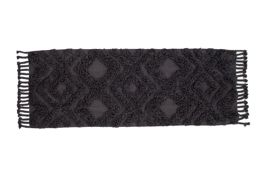 Skapa en ombonad atmosfär i ditt hem med en matta som ger en modern look till inredningen och en värmande känsla. Ullmattan från serien Hilma är en långsmal, rektangulär mattdröm i modern tappning, här i en sotig mörkgrå kulör. Mattan har ett tuftat mönster i högre lugg och en flätad frans rad längs kortsidorna som bidrar till en klassisk design i kombination med det trendiga. De slitstarka egenskaperna hos materialet gör att mattan fungerar utmärkt i de flesta rum. Placera solitär i hallen eller i vardagsrummet för att lyfta stilnivån några steg! Mattans mått: 200x70 cm.
