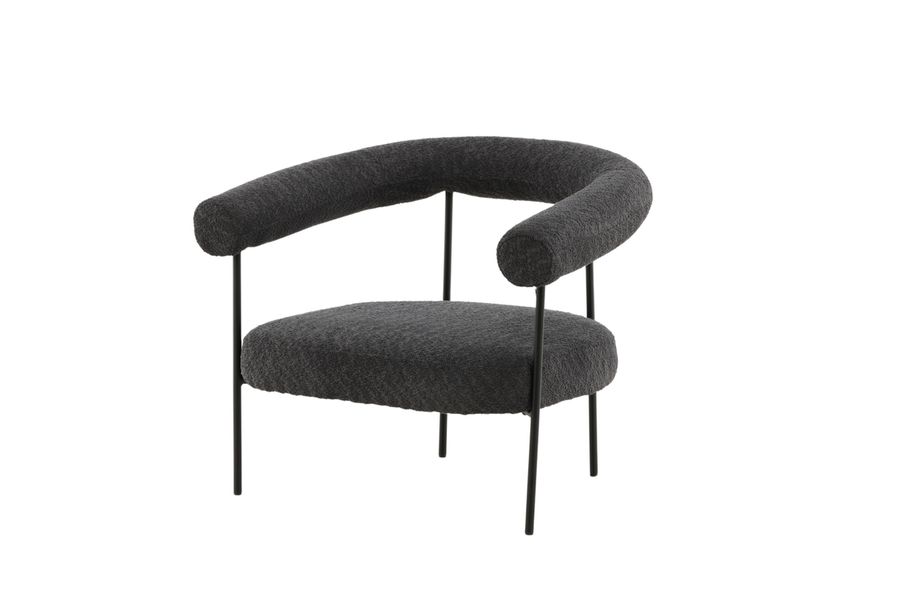 Ta inredningen till nästa nivå med fåtöljen Hökåsen från Josefin Lustigs kollektion. Med sina inbjudande nordiska former skapar denna fåtölj ett inbjudande och lyxigt intryck. Fåtöljen är formad likt en halvmåne och har en bekväm och rymlig sits, klädd i ett trendigt grått boucletyg. Ramkonstruktionen är minimalistisk i svart stål och den enkla designen ger en luftig känsla. Placera brevid soffgruppen eller varför inte ensam som en vacker inredningsdetalj.