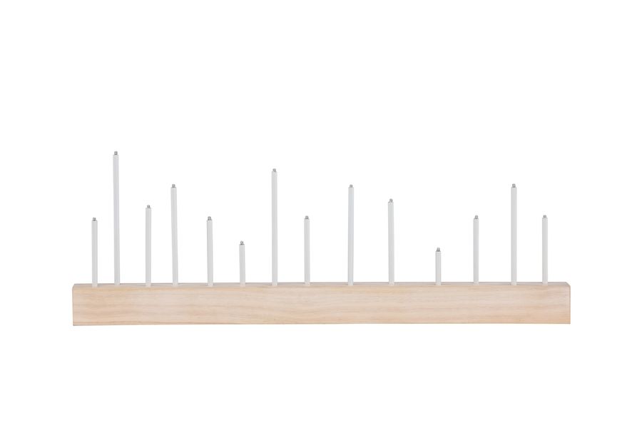 Ge ditt hem en touch av traditionell charm med Kungsberget adventsljusstake. Denna vackra adventsljusstake är tillverkad i vitvättad MDF och erbjuder en klassisk tolkning av den traditionella adventsdekorationen. Med hela 14 inkluderade lampor sprider den en varm och inbjudande glöd som skapar en stämning av förväntan inför julen. Den vitvättade MDF-designen ger en subtil och tidlös känsla till din inredning samtidigt som den skapar en lugnande atmosfär i ditt hem. Placera den på din matsalsbord, en hylla eller som en central del av din juldekoration för att lysa upp ditt hem under hela julperioden. Med Kungsberget adventsljusstake kan du skapa minnesvärda stunder och njuta av jultraditioner med en klassisk touch. Låt den bli en viktig del av din jul och skapa varaktiga minnen för kommande år.