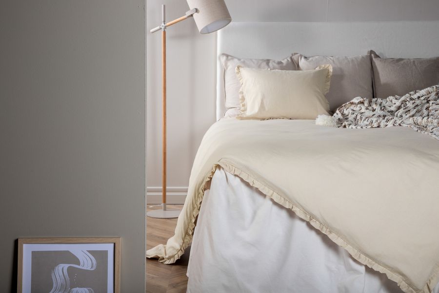 Bädda din säng charmigt med ett smickrade påslakanset från serien Lias! Det här mjuka bäddsetet i bommullsväv och linne har en gräddig beige kulör och försluts med knappar nertill. Tyget har en vacker volangkant runt alla kanter som bidrar till det mysiga blickfånget. Mått: 150x200. Skötselråd: Maskintvätt 60 grader. Bädda lyxigt och gosa ner dig i sköna lakan efter en lång dag!