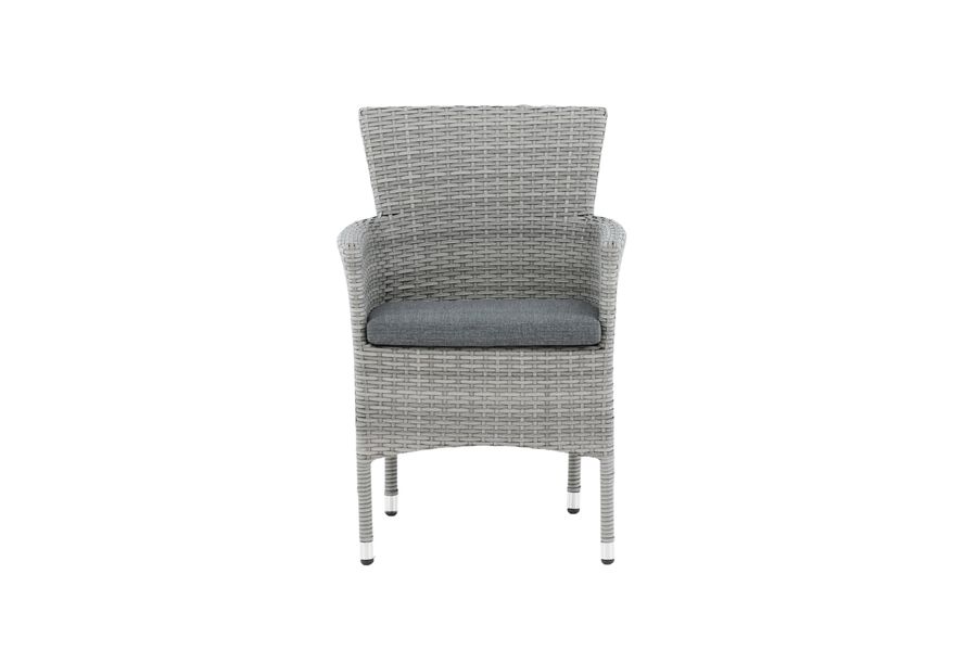Upptäck Malina, den perfekta utomhusstolen för elegans och komfort. Med en ram av slitstarkt aluminium och klädd i vacker rotting kombinerar Malina stil med hållbarhet. Måtten 86x58x60 gör den till en bekväm sittplats och passar utmärkt runt matbordet. Malina är inte bara en stol, det är en upplevelse av avkoppling och stil i din utomhusmiljö. Den medföljande dynan i polyester ger extra mjukhet och gör sittandet ännu behagligare. I en elegant grå färg blir Malina en tidlös och sofistikerad komponent i din utomhusinredning. Sitt bekvämt och njut av varje ögonblick när du samlas runt matbordet med Malina. Oavsett om det är en lugn stund för dig själv eller en trevlig middag med nära och kära, kommer Malina att skapa en atmosfär av avslappnad lyx. Upplev utomhuslivet med stil och komfort – Malina gör det möjligt.