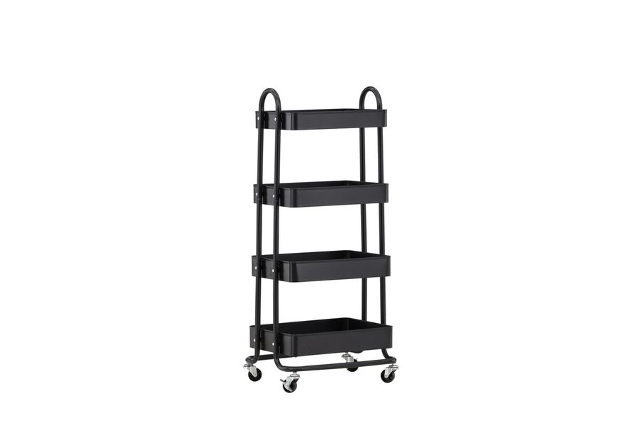 Behöver du ett snyggt och praktiskt sätt att organisera ditt utrymme? Då är vår förvaringshylla Manaus det perfekta valet för dig! Med sina fyra generösa lådor erbjuder den inte bara smart förvaring, utan även en touch av modern stilrenhet och organisering till ditt rum. Det finns flera fördelar med Manaus funktion. Hyllan är i svart pulverlackerad metall som enkelt matchar övrig inredning och är slitstarkt över tid. Med fyra smidiga hjul i botten kan du dessutom flytta omkring den enkelt. Placera den i badrummet och fyll med handdukar och hygienartiklar eller i garderoben för lite extra klädförvaring. Upplev känslan av ett välorganiserat utrymme som speglar din personlighet och stil. Manaus hjälper dig skapa en harmonisk atmosfär där du snabbt får en överblick över det du önskar ha framme. Ett tillskott i hemmet som inte bara håller dina saker i ordning, utan också förstärker känslan av hemtrevnad och organisering. Beställ idag och låt ditt utrymme stråla!