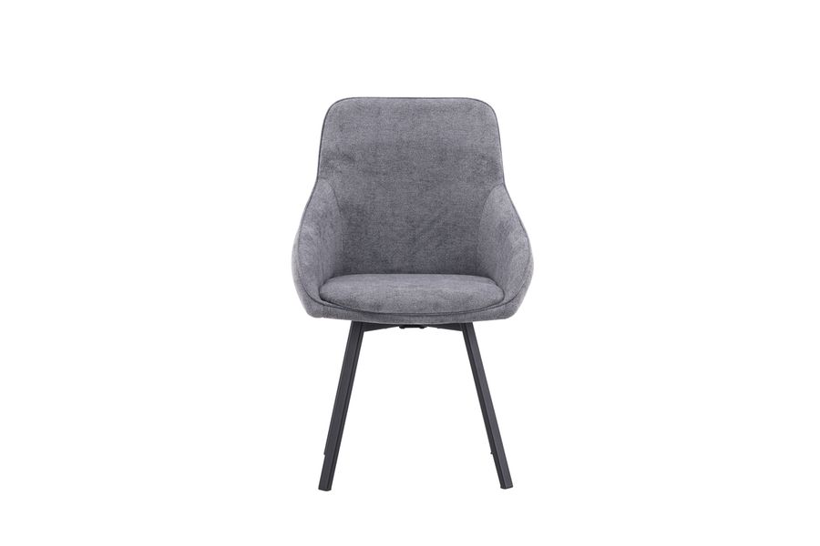 Det ska kännas skönt att slå sig ner kring matbordet – möblera med trendsäkra matstolar från serien Rosie! Den här stilrena stolen i skandinavisk design har en helklädd sits med integrerade armstöd i mörkgrått tyg och lätt utsvängda stolsben i svart metall. Den mjuka, stoppade sitsen ger hög komfort och bjuder in till långa, trevliga måltider. Tack vare den inbyggda snurrfunktionen kan du enkelt vrida stolen för ökad rörelsefrihet och bekvämlighet. Kombinera med ett matchande matbord för en komplett och inbjudande matgrupp!