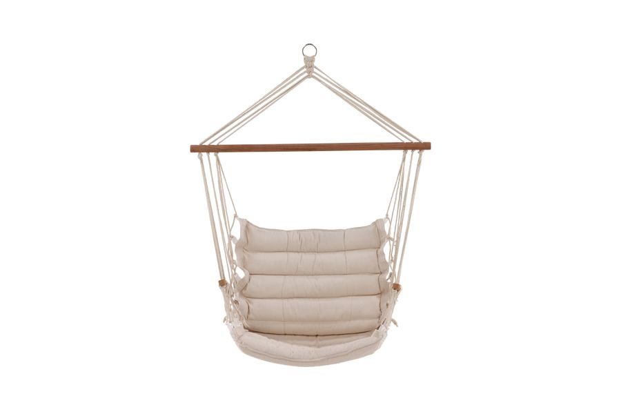 Skapa trädgårdens mysigaste plats med hjälp av en hammock från serien Tapaz! Den här hängstolen har allt: modern utformning, inbjudande design och tåligt material. Sisten är i vitt polyester- och bomullstyg och repen hålls ihop av dekorativa trädetaljer. Hitta din plats för avkoppling och njut av harmonisk och bekväm egentid!