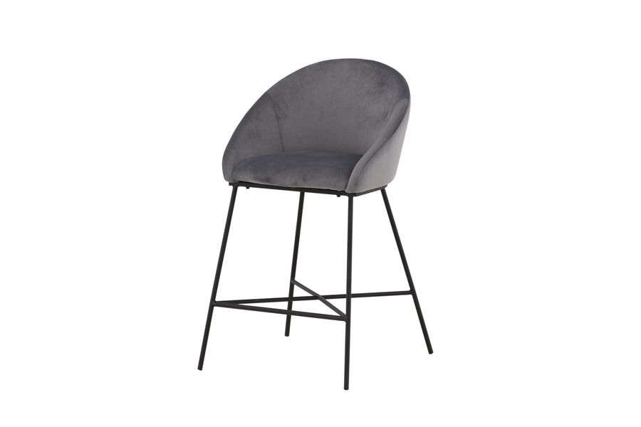 En modern barstol från serien Velvet i stilren grå kulör! Den här barstolen tillhör Venture Home kollektionen och har en helklädd design med lätt rundad rygg och sits i mjukt sammetstyg och minimalistiska ben i svart pulverlackerad metall – garanterat lika bekväm som iögonfallande. Möblera kring det höga matbordet eller vid bardisken i köket och förläng trivsamma stunder tillsammans!