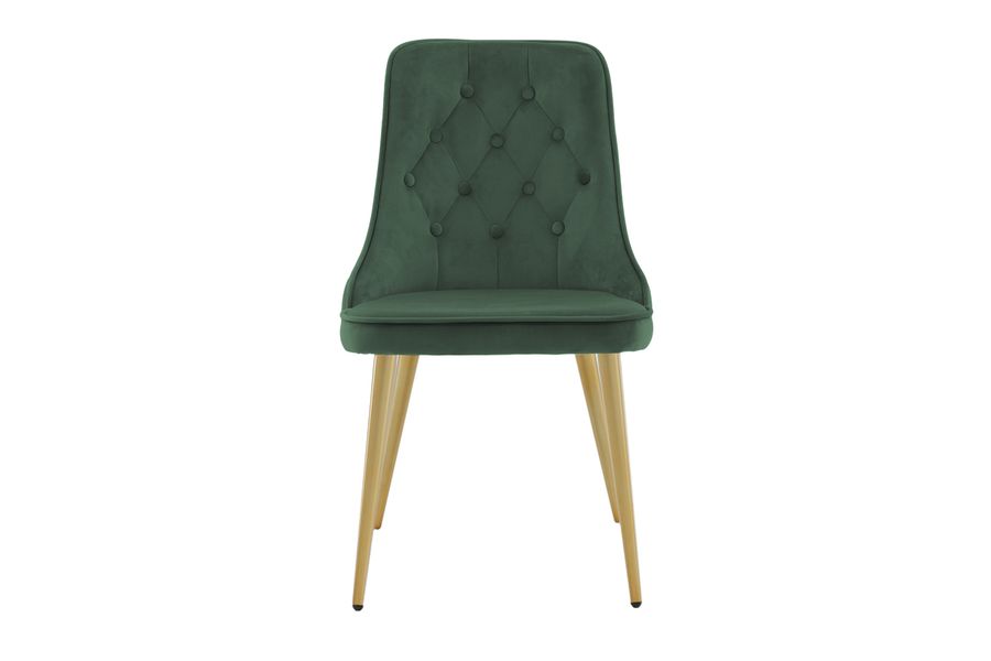 Skapa en pampig atmosfär i ditt hem med ett par sköna skogsgröna matstolar från serien Velvet Lyx. Stolen har en helklädd design, ben i mässingfolierad metall samt rundad rygg och sits i läckert grönt sammetstyg med mjuk stoppning och dekorativa knappar. Lika bekväm som iögonfallande! Lättare montering krävs. Skötselråd: Sammet har en tendens till att få tryckmärken när luggen lägger sig ner. Avtrycken kan göra att tyget ser slitet ut, vilket här helt normalt för den här typen av material. Beroende på hur ljuset faller kan tyget skifta i flertalet olika nyanser.